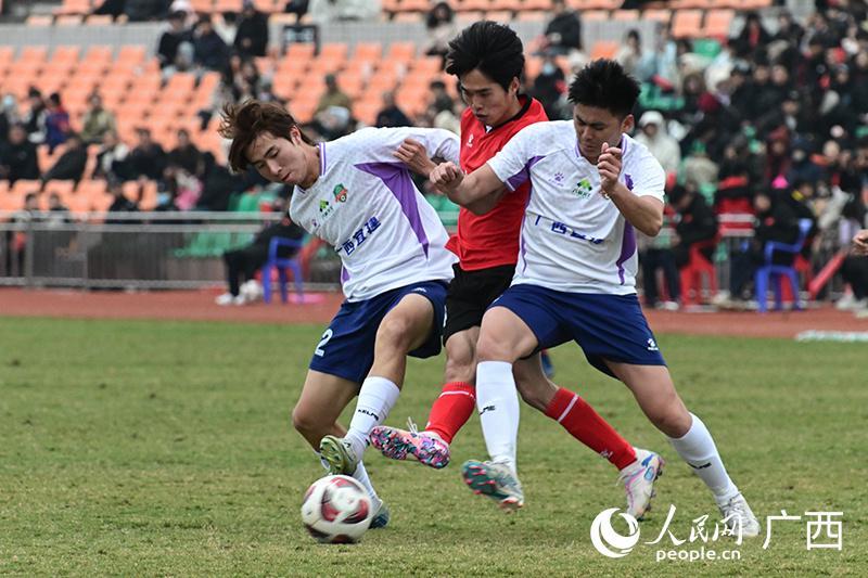 百色市平果市队主场迎战河池市宜州区队。人民网记者 雷琦竣摄